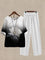 Black Casual Round Neck Rose Printed Half Sleeve Two Piece Suit