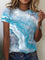 Blue Casual Round Neck Ocean Printed Short Sleeve T-shirts