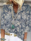 Blue Casual Graphic Tops V Neck Printed 3/4 Sleeve Blouse