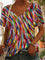 This V-neck T-shirt features a playful colorful line style, adding an artistic touch to casual wear. Comfortable and versatile, it’s perfect for daily outings.