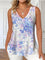 Casual Gradient Pattern Floral Print V-neck Sleeveless T-Shirt