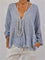 Women’s Casual Solid Color Textured V Neck Loose Long Sleeve Blouse