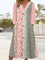 Women's Long Sleeve V-neck Floral Printed Lace Stitching Midi Dress