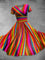 Women's Rainbow Striped Short Sleeve V-Neck Casual Midi Dress