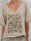 Women's V-Neck Embroidered Leaf And Floral Print Linen TopWomen's V-Neck Embroidered Leaf And Floral Print Linen Top