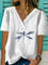 Dragonfly Graphic Printed V Neck Short Sleeve Casual Blouse