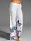 Women's White Wide-Leg Pants with Butterfly & Floral Print