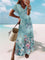 Blue Casual V Neck Floral Printed Short Sleeve Dress