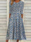 Casual Crew Neck Half Sleeve Smocked Floral Midi Dress