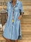 Casual Long Sleeve Collared Midi Shirt Dress with Pocket