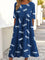 Dark Blue Casual Round Neck Short Sleeve Dragonfly Printed Dresses