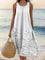 Elegant Floral Print Solid Color Round Neck Sleeveless White Dress