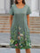 Green Casual Round Neck Short Sleeve Floral Printed Dresses