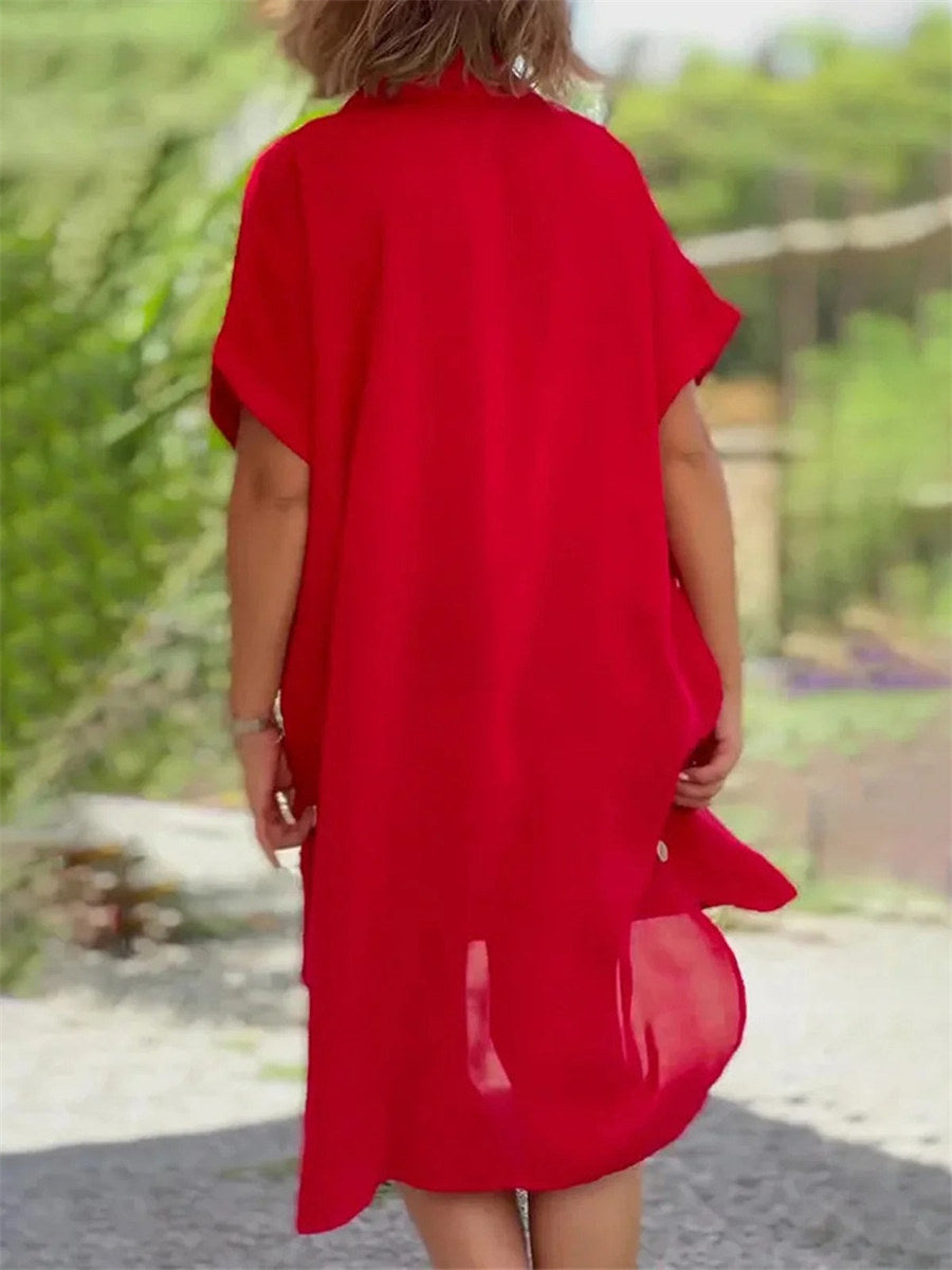 Plain Lapel Short Sleeve Casual Comfy Midi Dress