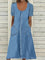 Plain Square Neck Short Sleeve Pocket Denim Midi Dress