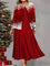 Snowflake Print Crew Neck Long Sleeve Two Piece Dress