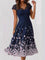 Trendy Floral Print V-neck Short Sleeve Blue Midi Dress