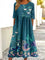 Vintage Bird Print Round Neck Half Sleeve Dress