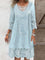 Women's 3/4 Sleeve Scoop Neck Lace Solid Color Midi Dress
