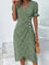 Bring effortless charm to your everyday style with this floral print midi dress. Designed with a flattering V-neckline and soft short sleeves, it features a side-button detail and a wrapped tulip hem that enhances the feminine silhouette. The lightweight fabric provides a comfortable fit for warm-weather outings, making it perfect for daily wear, lunches, or casual gatherings. A graceful and easy-to-style dress you'll reach for again and again.