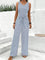 Casual Striped Print V Neck Sleeveless Jumpsuit