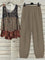 This two-piece set includes a sleeveless top and loose bottoms with a ditsy floral print. The relaxed fit and soft fabric make it a breezy, comfortable choice for casual outings.