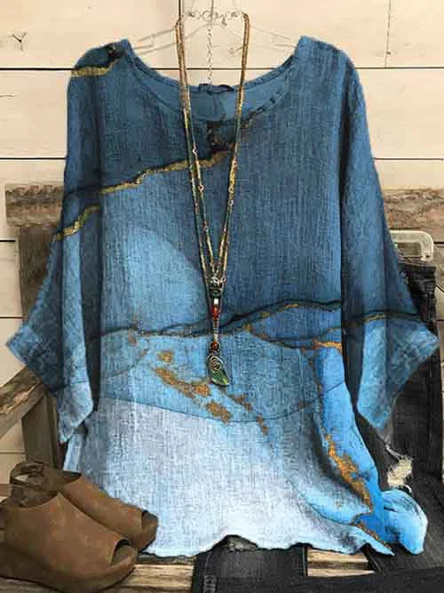 Elevate your casual wardrobe with this round neck 3/4 sleeve marble print blouse. Featuring a unique marble pattern, it?ˉs perfect for adding a touch of style to your everyday look. Pair it with jeans or skirts for a chic, effortless outfit!