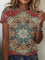 Casual Round Neck Short Sleeve Mandala Print T-shirt