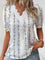 A stylish and comfortable blouse featuring a delicate floral print and an elegant lace V-neck design. This piece is crafted from breathable fabric, offering a relaxed fit perfect for casual outings or semi-formal occasions. It pairs beautifully with skirts, jeans, or trousers, adding a feminine touch to any outfit.