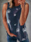 Floral Print Round Neck Sleeveless Blue Tank Tops
