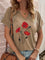 Khaki Casual Graphic Tops V Neck Floral Printed Short Sleeve Blouse