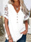 Solid Color V-neck Lace Short Sleeve White Blouse