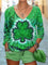 Tie-Dye Shamrock Print V-neck Long Sleeve T-Shirt