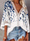 White Casual Graphic Tops V-neck Long Sleeve Flower Printed Blouse