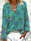 Women’s V Neck Long Sleeve Boho Geometric Print Loose Fit Blouse