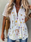 Women’s Wildflower Print Button Front Shirt with Lace Short Sleeves