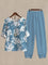 Blue Casual Round Neck Floral Printed Half Sleeve Two Piece Suit