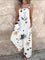 This sleeveless jumpsuit features a breezy, plant-print design, perfect for warm weather and casual outings.