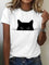 Casual Cat Print Round Neck Short Sleeve T-Shirt