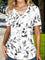 Casual Leaf Print V-neck Short Sleeve Blouse
