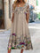 Women's Short Sleeve Square Collar Floral Printed Lace Stitching Midi Dress